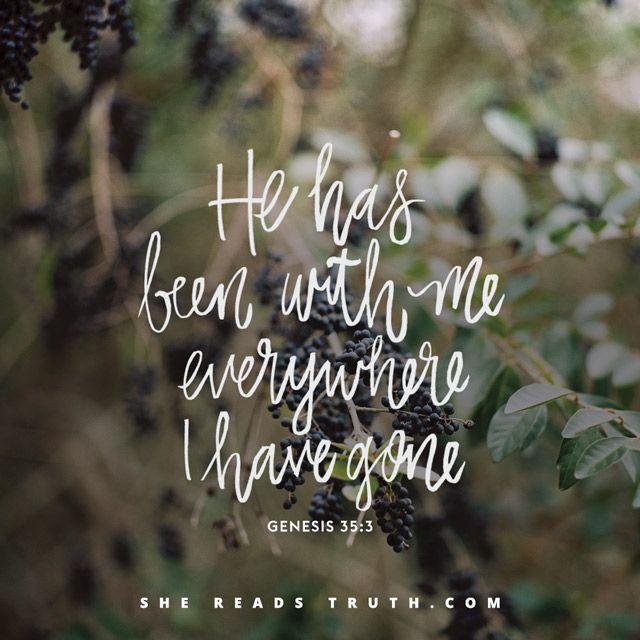 - Genesis 35:3 (NIV) – “He answered me in the day of my distress and has been with me wherever I have gone.” Jacob’s affirmation is a reminder that God has answered me many times in the past. He’s provided his calming presence, all-wise guidance, and loving care my entire life. I can trust him for all my tomorrows.