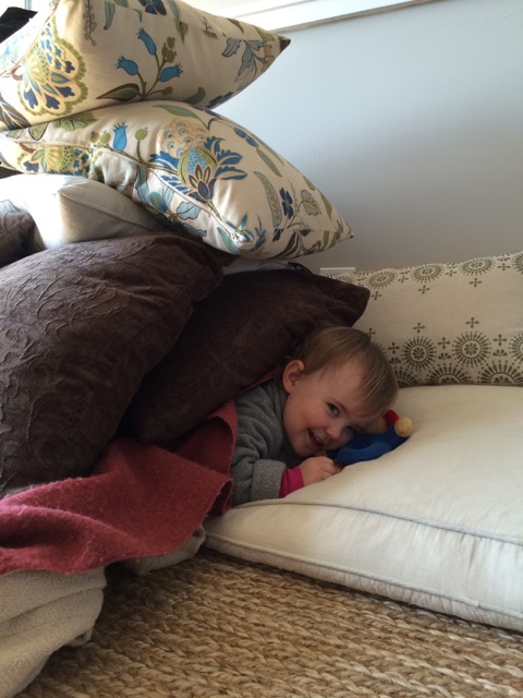 E. loved to be buried under those pillows, then explode out of them like a jack-in-the-box. She’d stand tall with arms stretched toward the ceiling, and look up at me with triumph—all while giggling with delight.