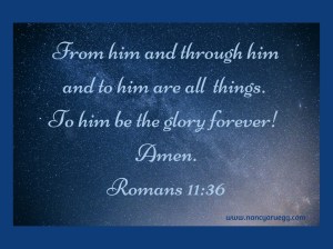 One of my favorite passages of scripture wraps up chapter eleven of Romans. The last four verses remind me (with authoritative yet beautiful language) that my wise and powerful God is in control of all things.